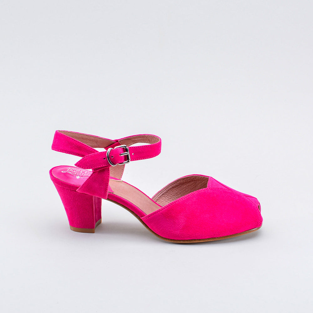 If you're looking for the perfect vintage sandal, look no further than Lido. These pretty and practical shoes are closely based on an original late 1940s to early 1950s faux suede sandal in our collection. The design is perfectly balanced, made in a durable everyday material, with secure buckle straps and a tiny peep toe, making the Lidos perfect for dancing, walking, and lounging.